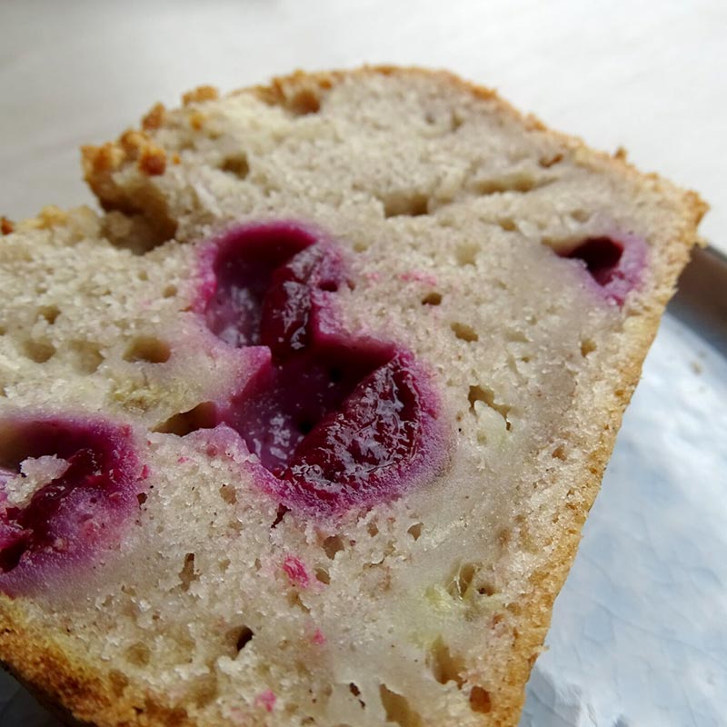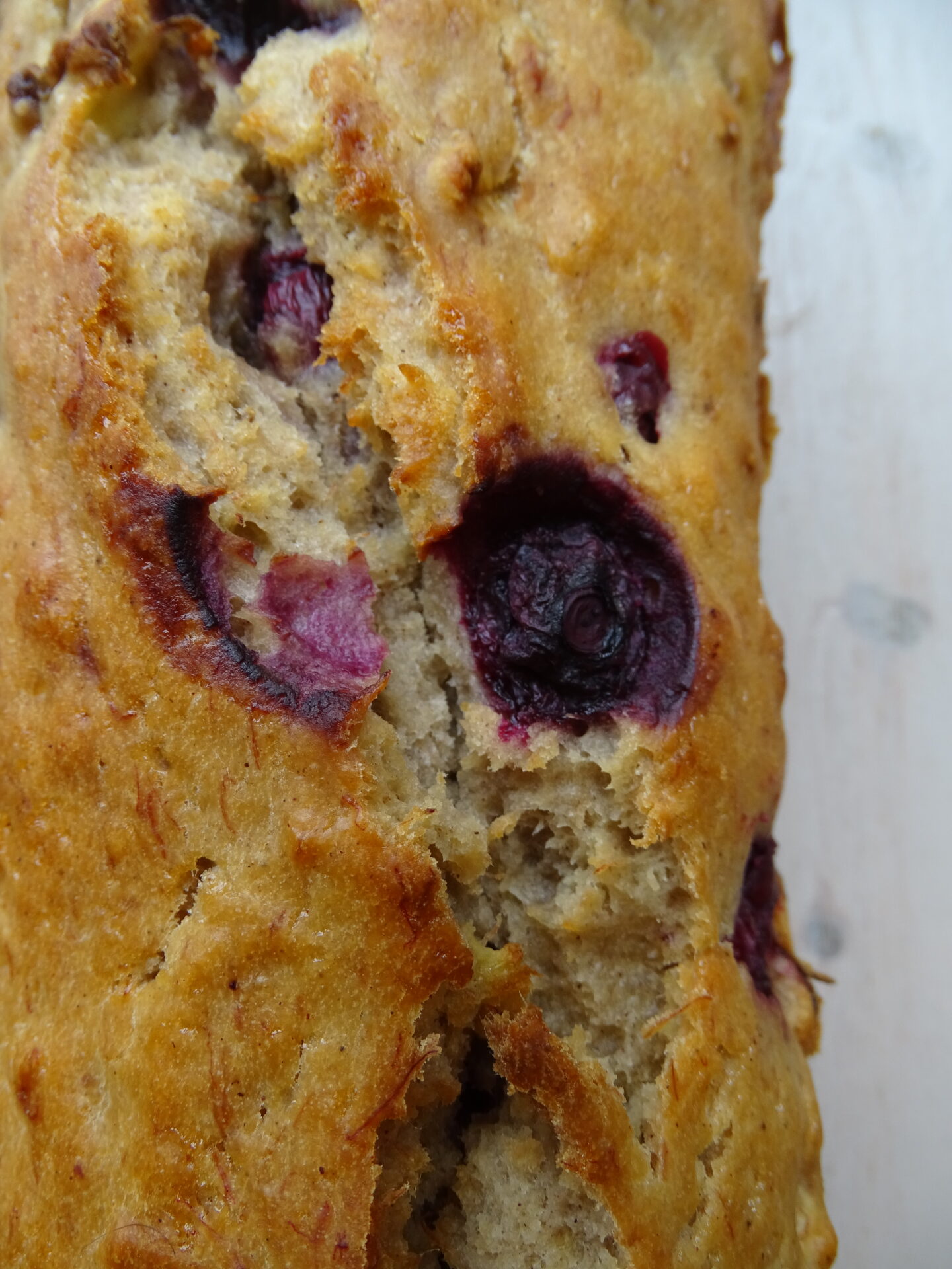 Bananenbrot mit Blaubeere und getrockneter Aprikose: Bananenbrot (12 Stücke), Blaubeere, getrocknete Aprikose, Zimt, zuckerarm