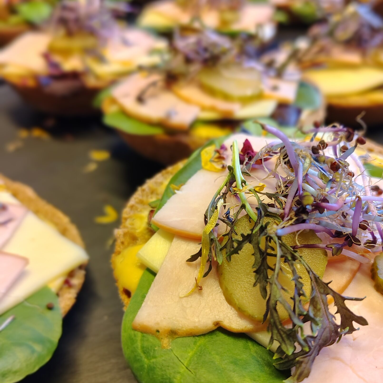 4x Bio-Kochschinken/Gouda/Honig-Senf/eingelegte Gurke/Salat/Sprossen